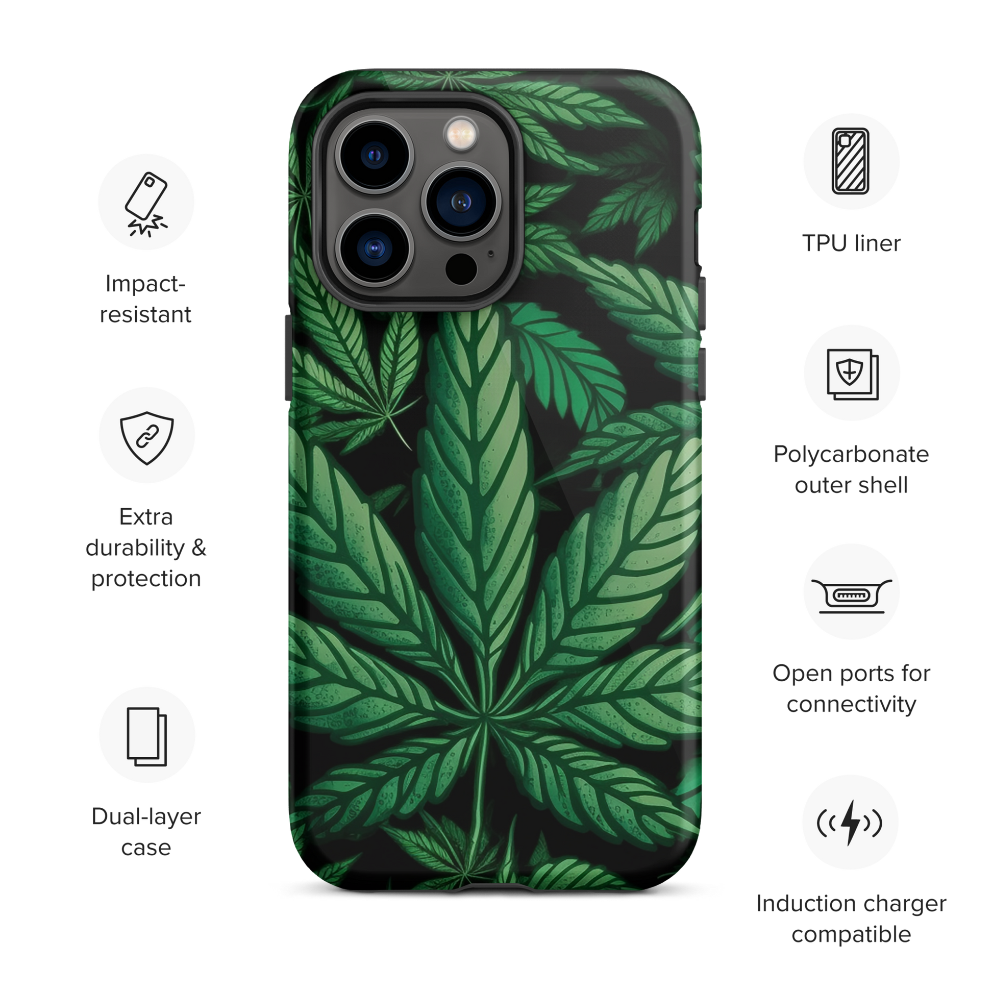 Protect your phone with style when you're stoned using a durable, dual-layered case. The outer shell is made of impact-resistant polycarbonate, while the inner lining sports TPU lining for maximum impact absorption. Keep your phone fashionable and safe all year round!